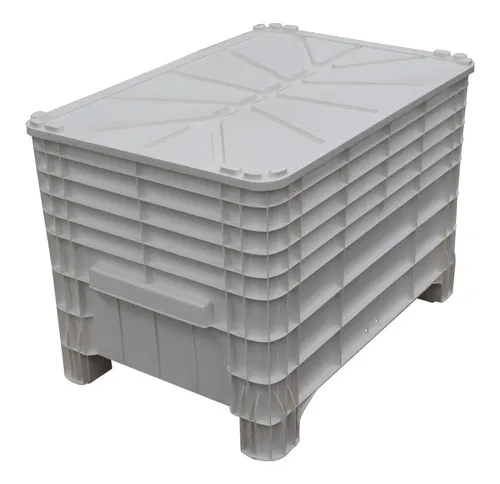 Caixa Plástica 372 Litros Empilhável Com Tampa, Branca